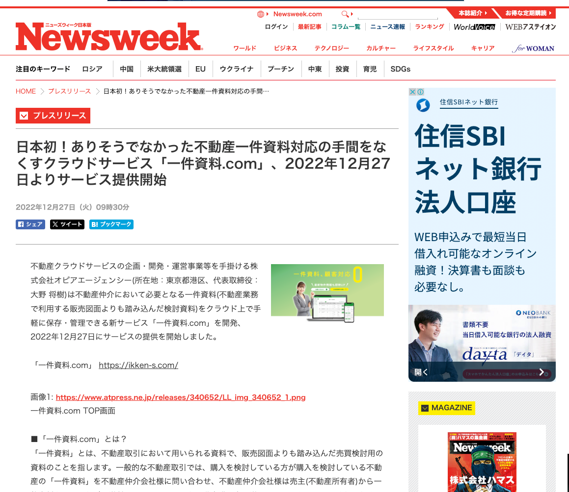 日本初!ありそうでなかった不動産一件資料対応の手間をなくすクラウドサービス「一件資料.com」、2022年12月27日よりサービス提供開始